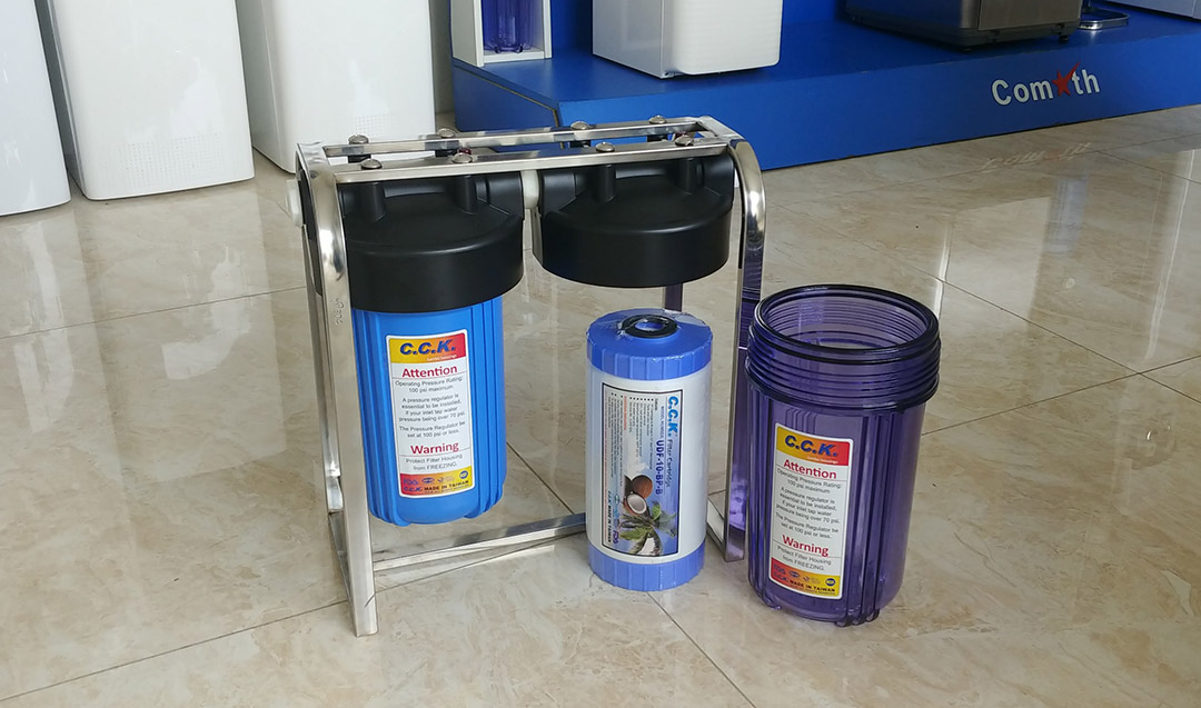 - – Cấu tạo lõi lọc: lõi lọc UDF 2in1 CCK nhập khẩu Đài Loan, mỗi lõi bao gồm 2 tầng lọc: Bông PP lọc chặn cặn bẩn và Than hoạt tính hấp thụ chất độc hại