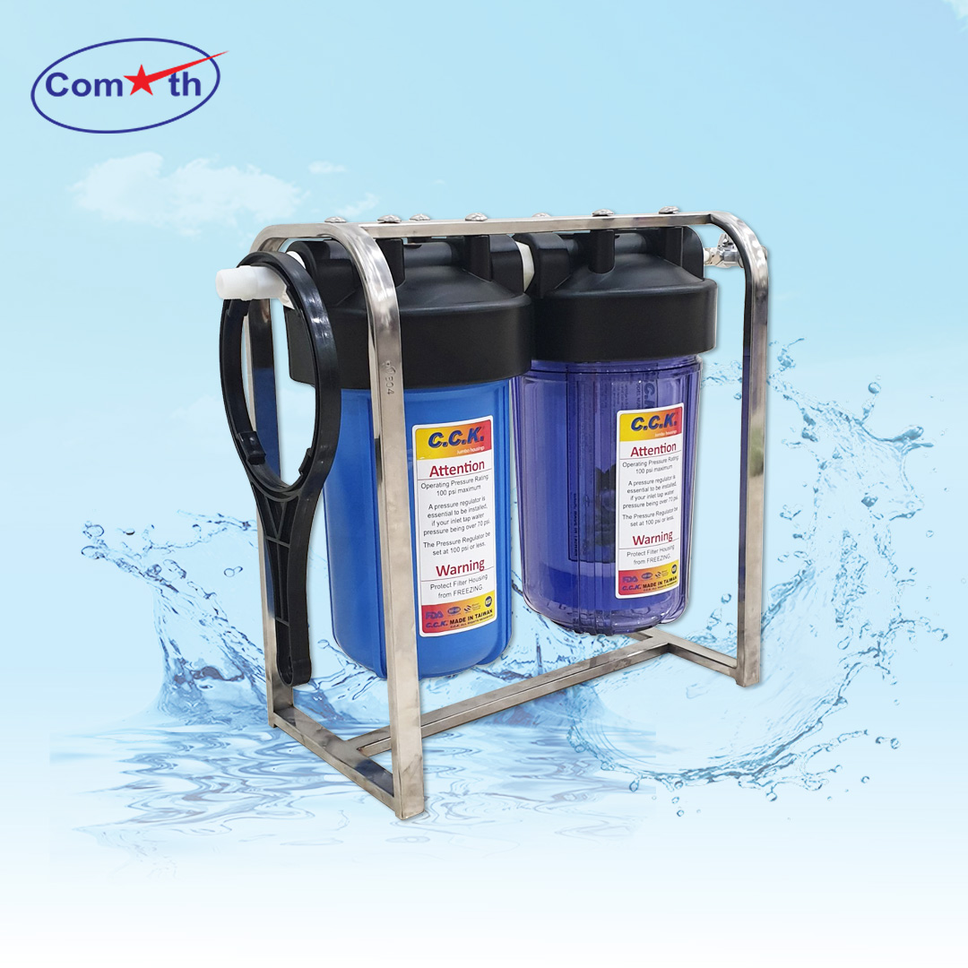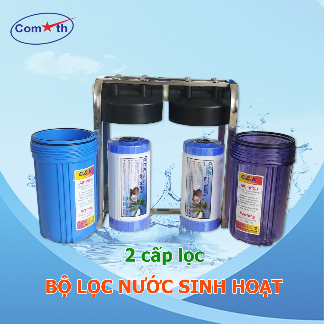 Bộ lọc nước sinh hoạt 2 cấp Comath C907-2 gồm 2 lõi lọc thông minh chuyên sử dụng lọc nước máy, nước giếng nhiễm sắt tạo ra nước sạch dùng nấu ăn trong gia đình, nuôi cá, hệ thống phun sương . . .