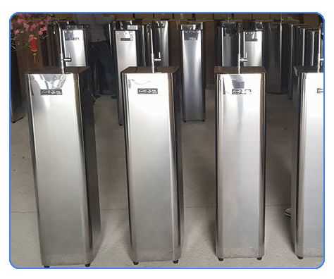 Máy với vỏ tủ được thiết kế nhỏ gọn và hoàn toàn được làm từ chất liệu inox SUS 430, không gây gỉ sét, không có độ sắc cạnh. đảm bảo an toàn khi người sử dụng thay thế lõi lọc nếu muốn.