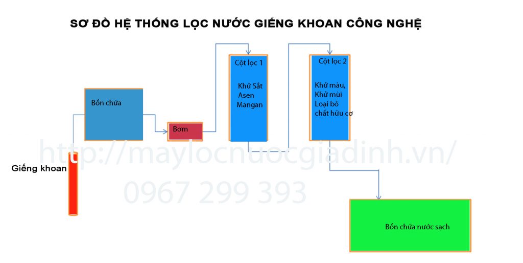 Sơ đồ công nghệ hệ thống lọc nước giếng khoan
