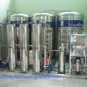 + Thiết bị thẩm thấu ngược: Đây là thiết bị quan trọng nhất quyết định đến chất lượng nước thành phẩm. Tại đây dưới tác dụng của áp suất thẩm thấu(được tạo ra bởi bơm cao áp) màng lọc thẩm thấu ngược loại bỏ các ion kim loại có trong nước đồng thời xử lý đến 90% các vi khuẩn có trong nước. Làm cho nước có độ tinh khiết cao. Chất lượng nước thành phẩm phụ thuộc vào áp suất thẩm thấu và chất lượng nước sau khi qua các thiết bị tiền xử lý trước RO. Màng lọc RO chỉ vận hành đạt hiệu quả và chất lượng cao nhất khi nước đi qua màng lọc phải đảm bảo các yêu cầu sau: